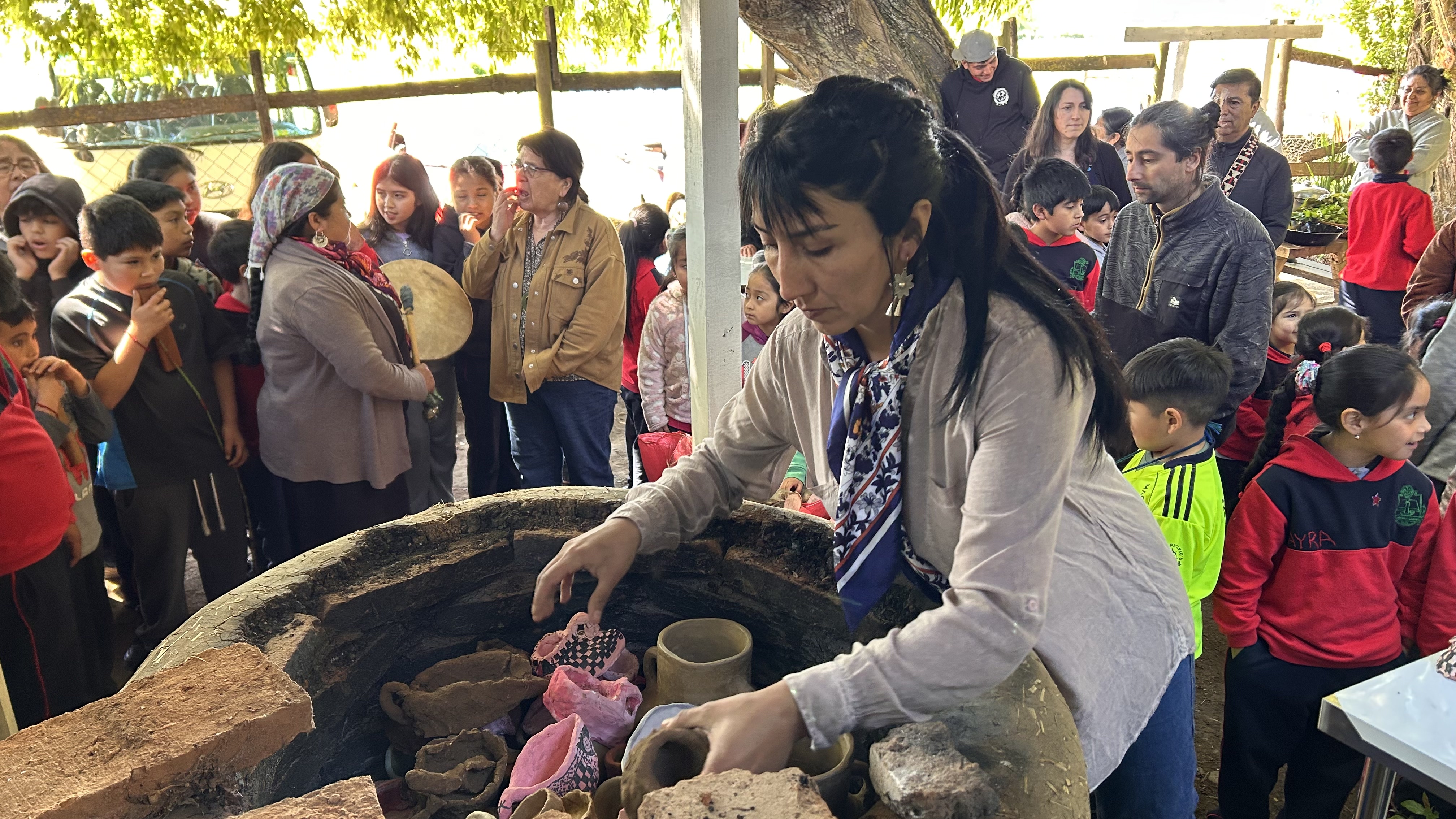 La jornada comenzó con una rogativa inicial para pedir por el buen resultado del proceso. La cocción de las piezas se llevó a cabo en un horno de barro especialmente elaborado para este fin, infraestructura clave para asegurar la calidad de la cerámica. Durante las horas que dura este procedimiento, se generó un espacio de convivencia (mizawun) donde estudiantes, profesores y apoderados compartieron la espera.